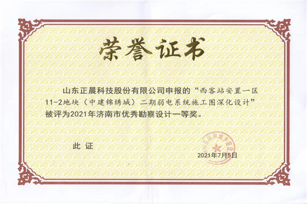 近日,2021年度济南市优秀工程勘察设计奖评选结果揭晓,万搏官方在线入口凭借西客站安置一区11-2地块(中建锦绣城)设计项目及中垠雅苑设计项目分别荣获济南市优秀工程勘察设计一等奖及二等奖。