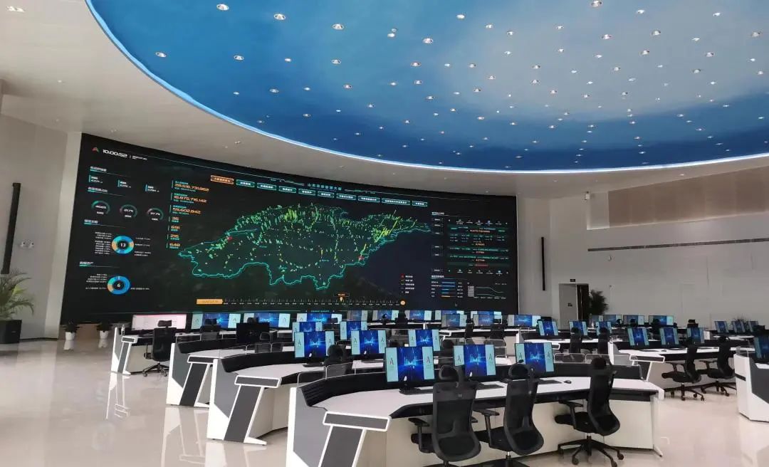 作为山高集团数智化转型的中枢载体,智慧管理中心集科技创新、管理创新、实践创新于一体,建筑面积约3500㎡,分上下两层,由应急指挥区、指挥调度区、出行服务融媒体区、展示及休闲区四个功能区组成。大厅依托智慧高速产业聚集优势,配置了目前全国各交投单位中面积最大的信息展示大屏,充分运用物联网、大数据、云计算、人工智能、绿色能源等先进技术,全时、全量、全域地采集、分析路网信息,并通过大屏呈现的云控平台实时展示。
