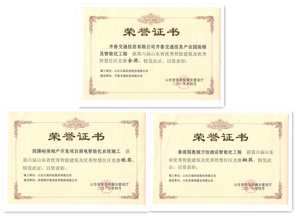 山东省智能建筑及优秀智慧住区竞赛评选活动,是由山东省住房和城乡建设厅主办,山东省智能建筑技术专家委员会组织实施,旨在提高山东省智能建筑的建设水平,推动智能建筑行业技术创新而设置,是我省建筑智能化工程质量最高荣誉奖。本次评选自2018年9月开始,经过项目申报、工程评审、现场考察、网上公示后,最终经省住房城乡建设厅审批通过后认定金奖项目7项、银奖12项,铜奖15项。